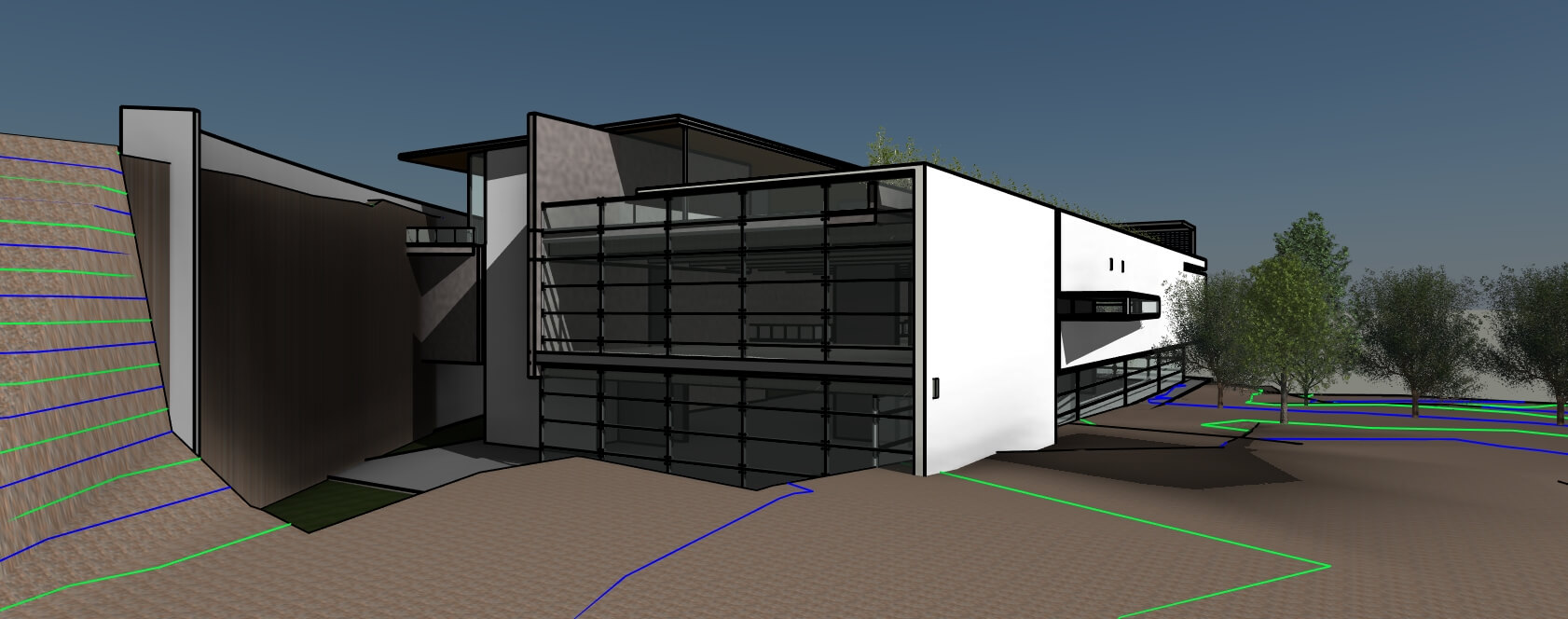 השטחים הפתוחים שברחבה התחתונה, הם מוגנים ומוגדרים הן על ידי הבנין והן על ידי קיר התמך הצפוני, קיר מעוגל המחבק את המתחם כולו מצפון. קיימת חשיבות גדולה בעינינו ליצירת מבנה בר-קימא, המצל על חלליו השונים ועושה שימוש במוצרים כחול לבן, וזאת ברוח אהבת ארץ ישראל והמולדת. - לחצו כאן לצפייה בעוד תמונות מהפרויקט