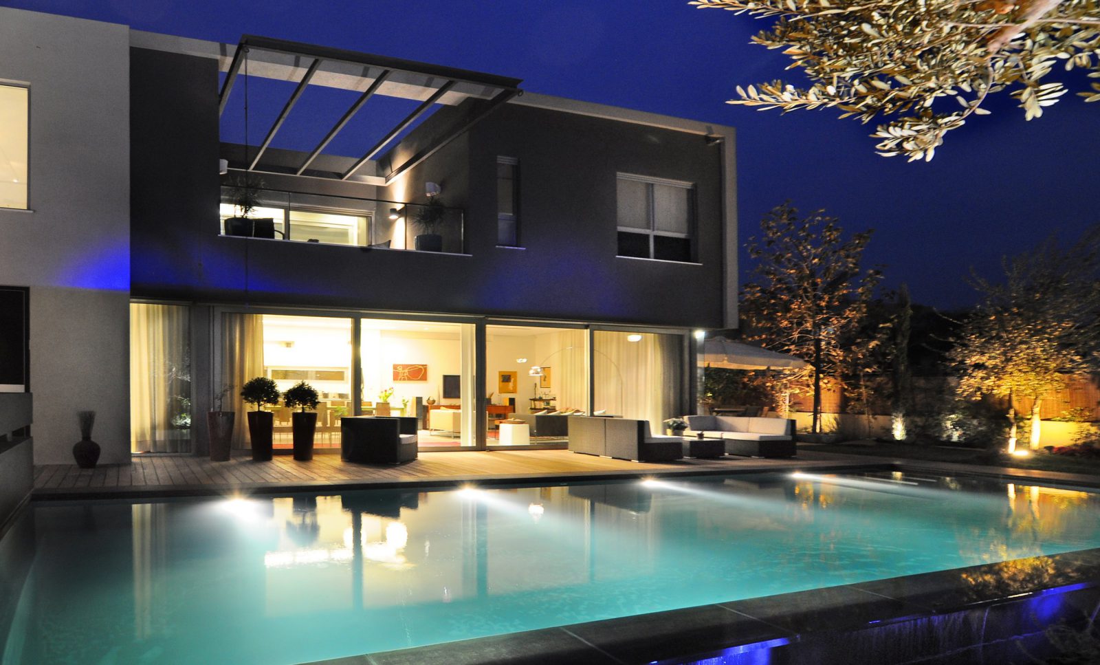A modern and precise single-family dwelling that clearly defines its communal spaces that connect to the open areas. The home preserves its inhabitants’ privacy, and faces open green areas. 310 m2 built-up area on a 617 m2 plot, and a 12.5-meter pool.