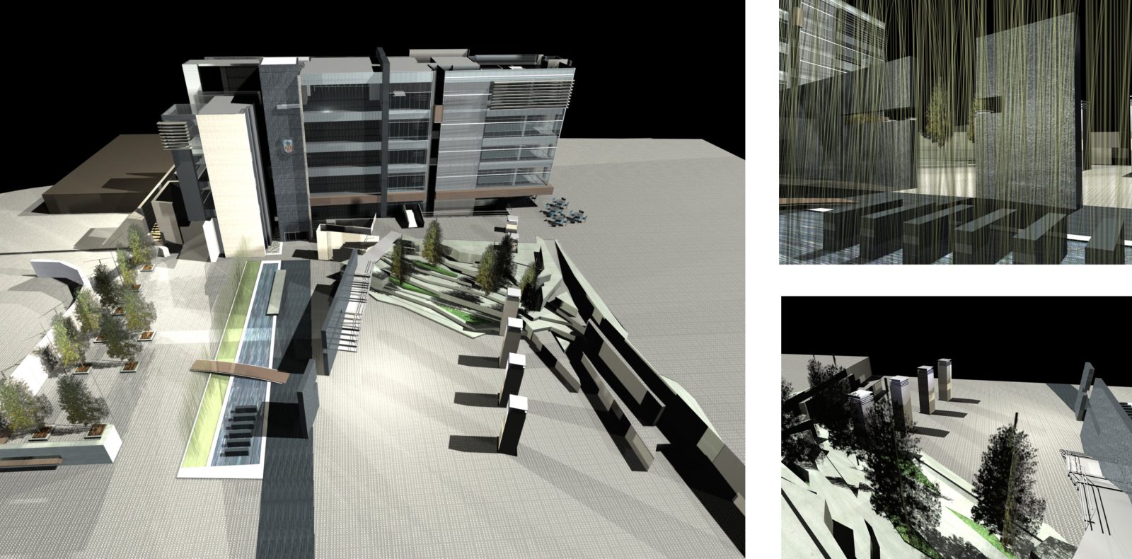 Design of the new municipality building (around 7,500 m2), preparing a master plan to develop Kiryat Shmona’s main business center, in collaboration with the municipality, Ministry of Tourism, the Israel Government Tourism Company, and the Infrastructure Development Company. The design won a commissioned architects competition, and addresses all land uses in the area, planning the open squares, rehabilitating areas for offices, commerce, tourism, traffic and transportation, preserving and improving the appearance of the area, preparing a master plan and zoning changes according to the plan, with special emphasis on urban design aspects and creating continuity for pedestrian traffic between all the city’s hotspots and important sites. The project was given honorable mention as part of the Ayalon Award for urban design for the year 2000.