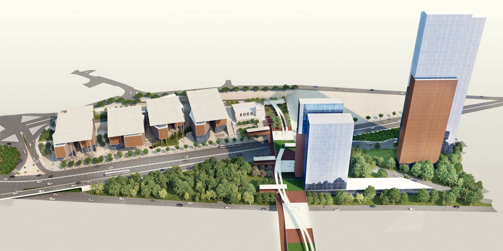 הגוש המערבי של המתחם, מעברו של כביש 4, כולל מבנה משרדים בן כ- 10,000 מ"ר, ולצידו מגדל נוסף, של מסחר, משרדים, ומגורים ברמה גבוהה יותר.